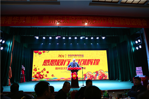 1月8日,一场主题为“感恩同行*共创辉煌”2017年赣州安太妇产医院迎新联谊会在赣州客家风情园欢乐上演。香港华灵集团董事长柯晗和赣州安太妇产医院总经理分别致辞献上新年祝福,从晚上6点半开始到9点半结束,为时3小时的晚会始终贯彻欢乐和谐、幽默祥和的气氛。